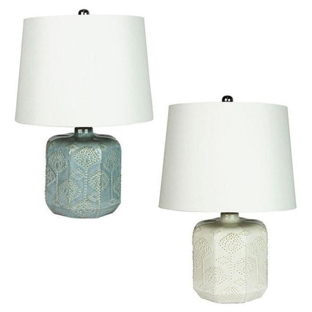 Bikki Table Lamp Embossed Ceramic E27 BL/WH Oriel Lighting OL97971BL, OL97971WH