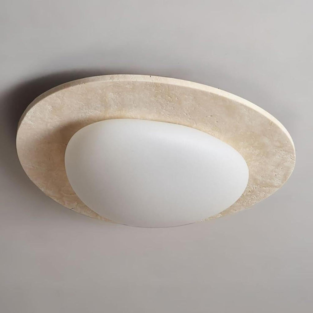 Smooth and grounded, Thalos reimagines the classic oyster light through the natural beauty of travertine. Its sculptural form and soft illumination bring a sense of calm and material warmth to contemporary interiors.