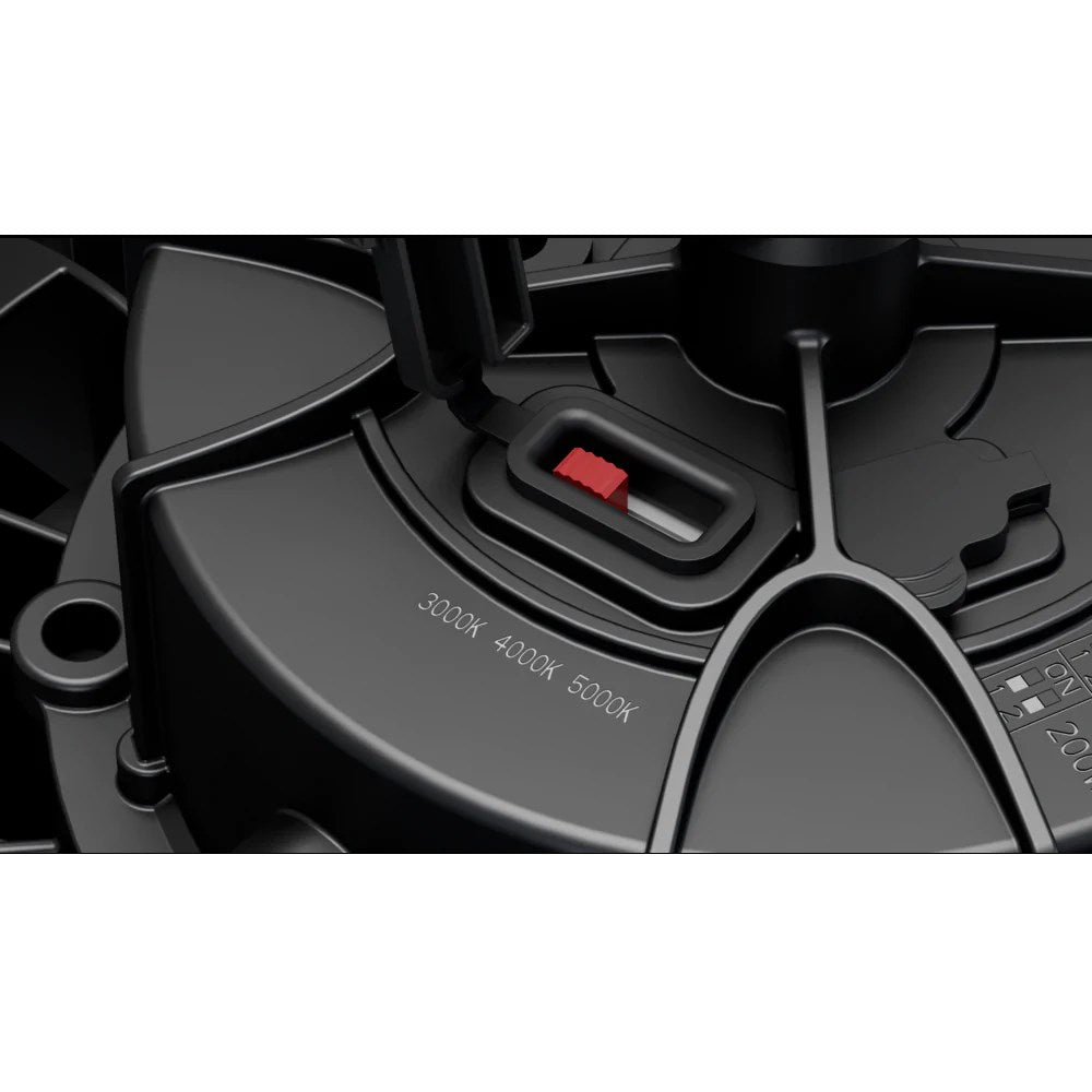 • Power/lumen settings at 3000K : 100W/13000lm, 150W/18000lm, 200W/22000lm, 4000K : 100W/14500lm, 150W/21000lm, 200W/26000lm,