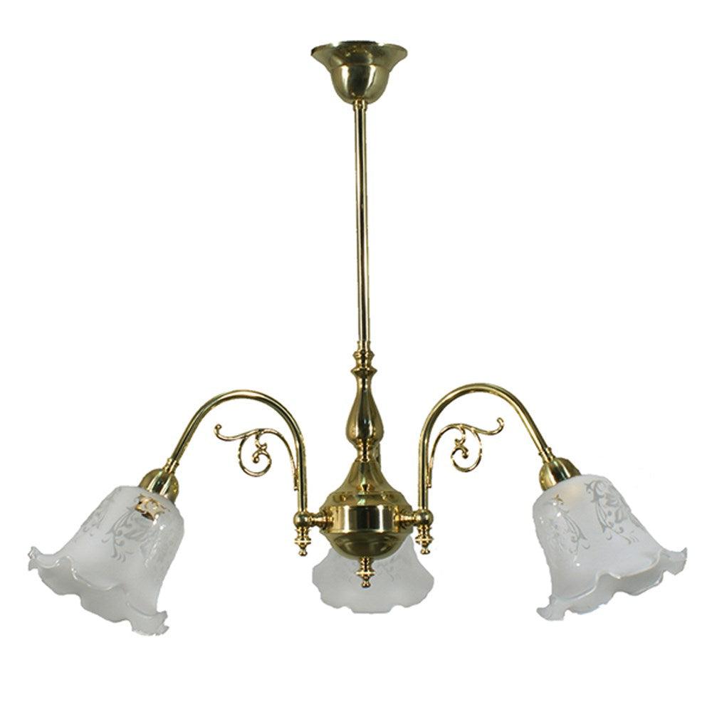Victoriana Pendant Light 3Lt Brass with 5008 Frost Etched Glass