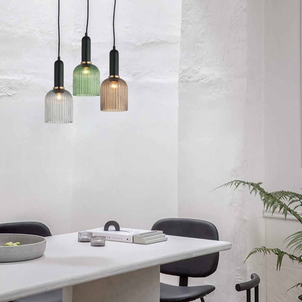 Vintaj Interior Ellipse Ribbed Glass Pendant Light 1Lt Available in 6 Colours