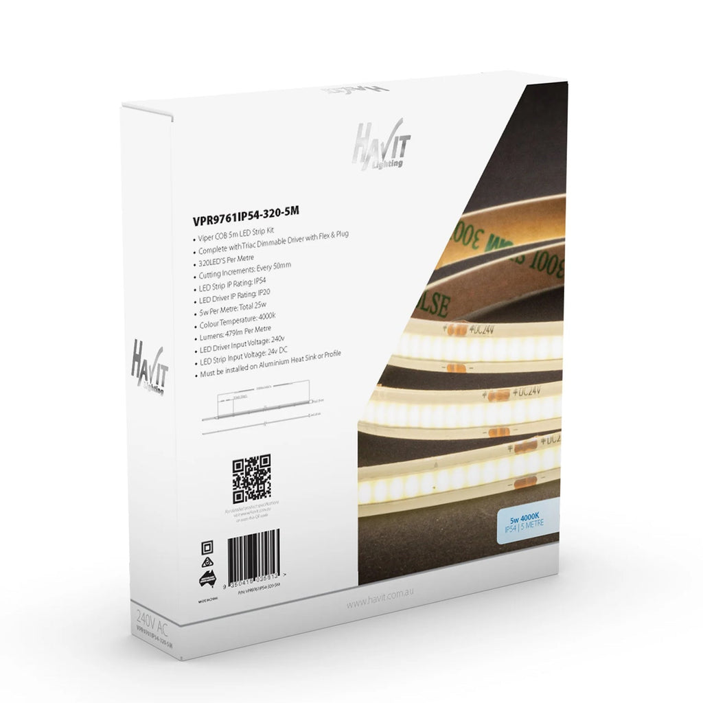 Viper COB 5w Per Metre 5m LED Strip Kit 3000k Havit Lighting VPR9760IP54-320-5M