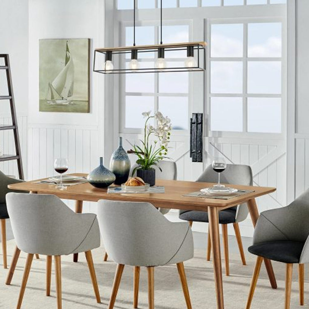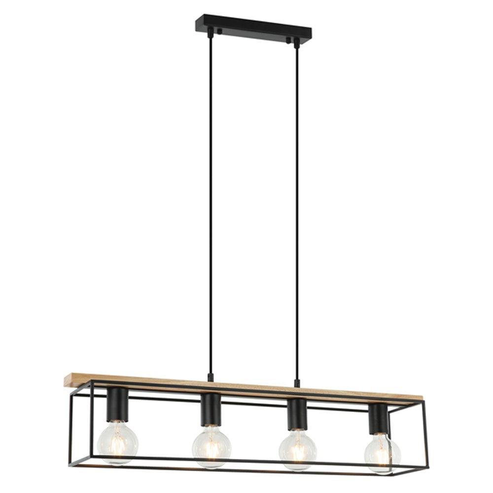 VIRUN Interior Rectangular Frame Wood with Black Hardware Pendant Light.
