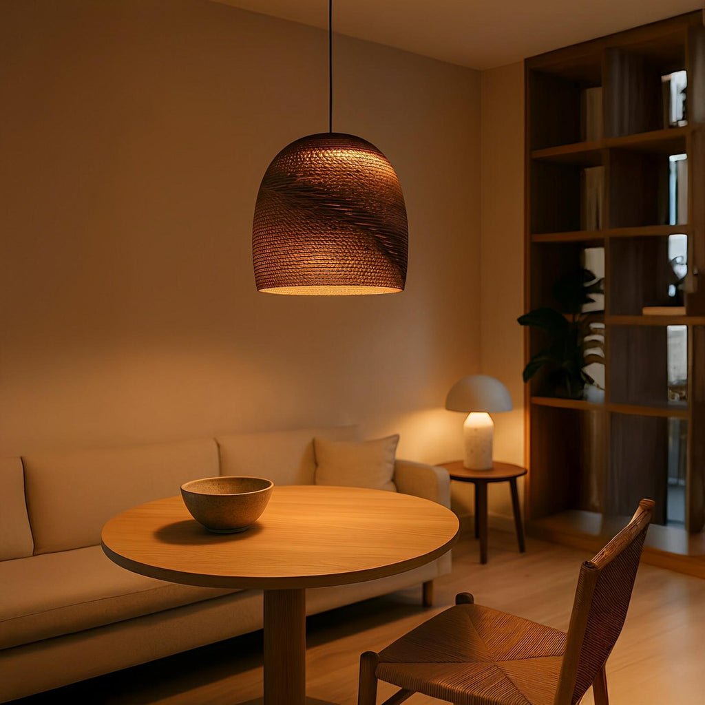 Zanora Pendant Light Dome Hand Crafted Recycled Cardboard in Brown