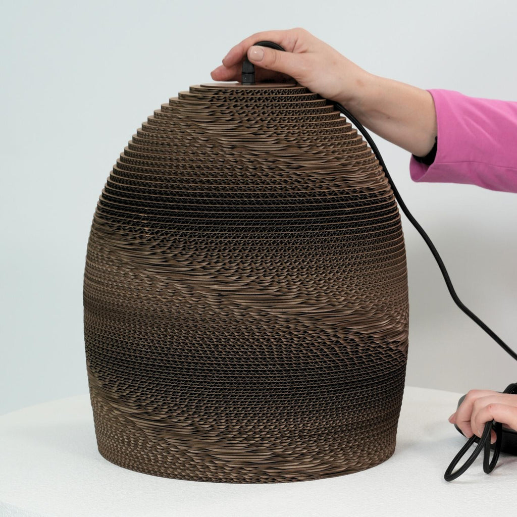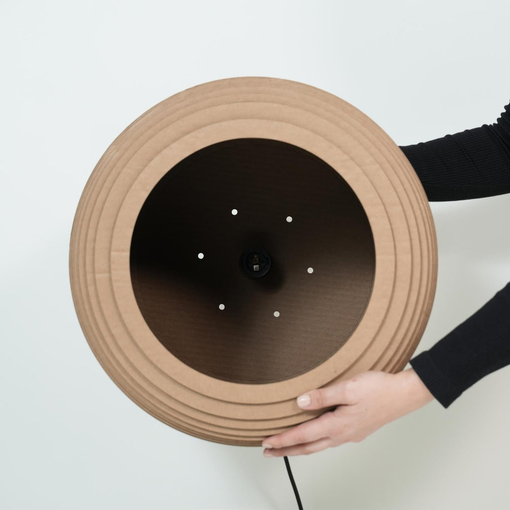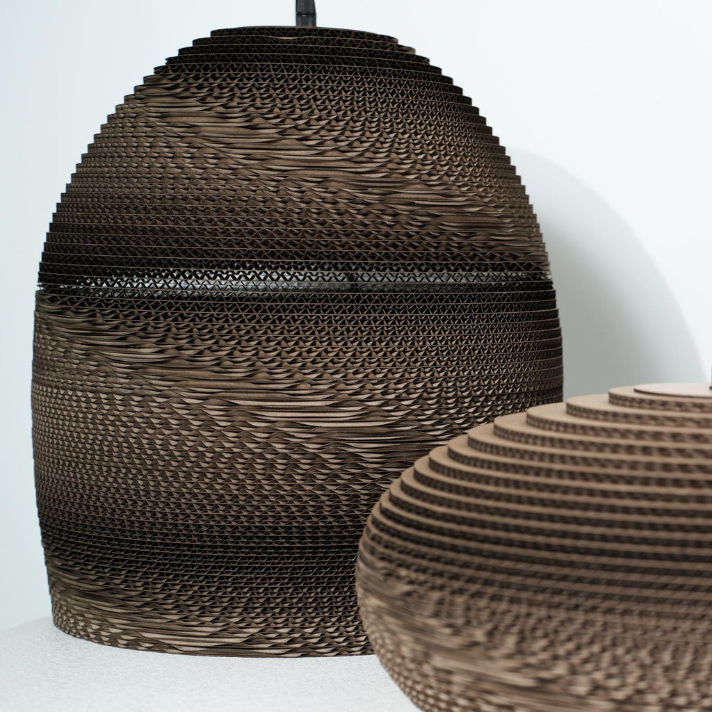 Handmade from recycled cardboard, the Zanora collection is part of the award-winning Scraplights series by Graypants, designed to transform waste into wonder. Each shade is laser-cut for precision, assembled by hand, and treated with a non-toxic fire retardant, creating a piece that’s as sustainable as it is striking.