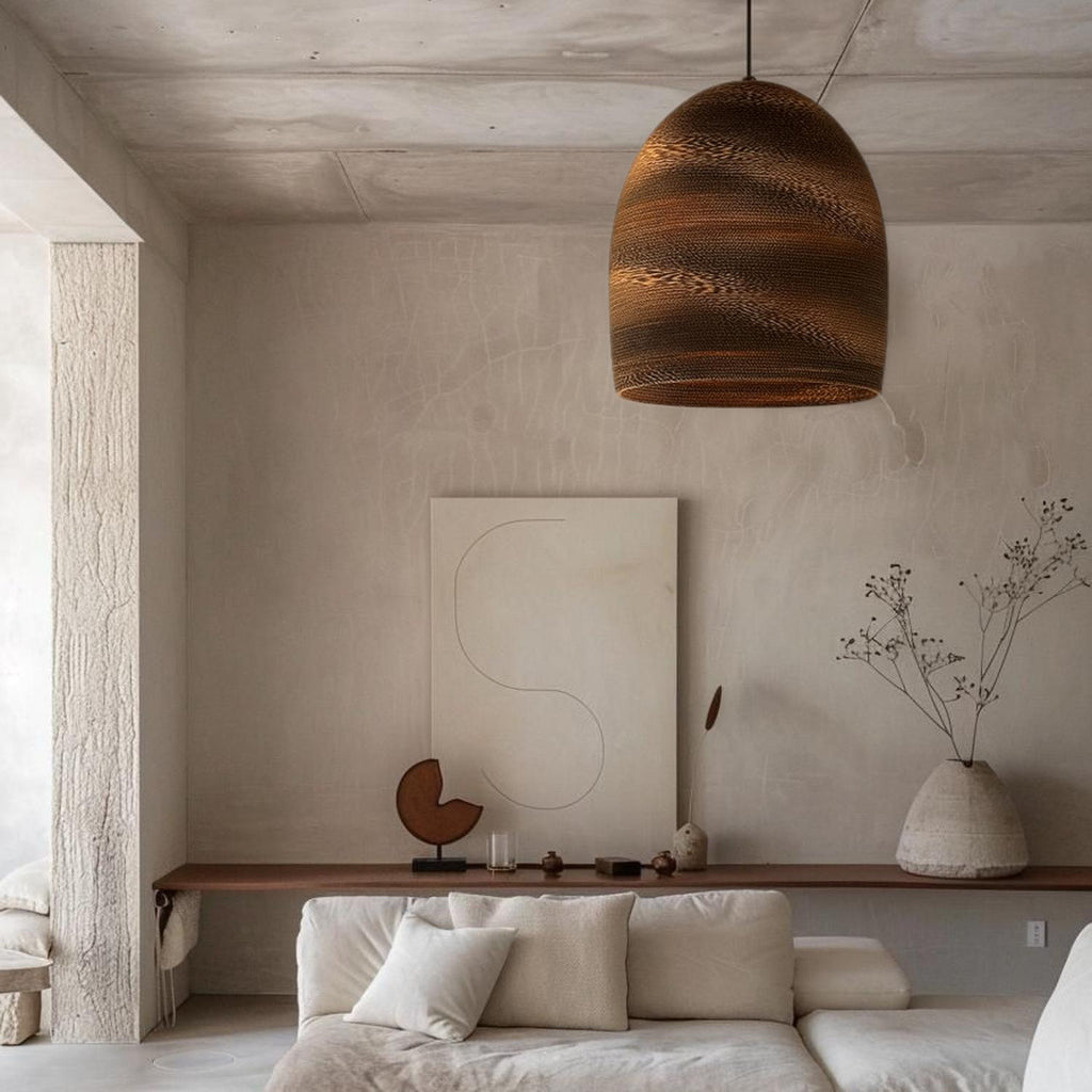 Zanora Pendant Light Dome Hand Crafted Recycled Cardboard in Natural